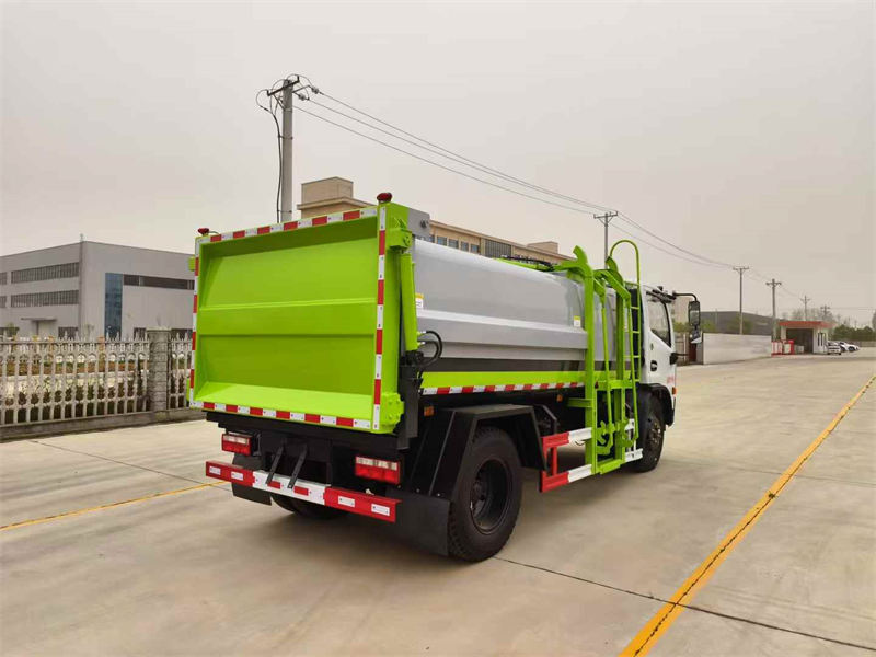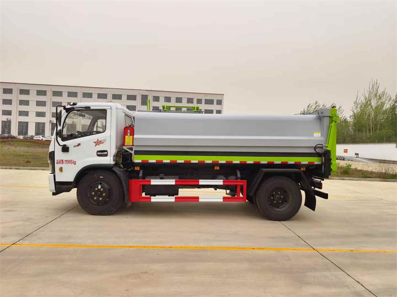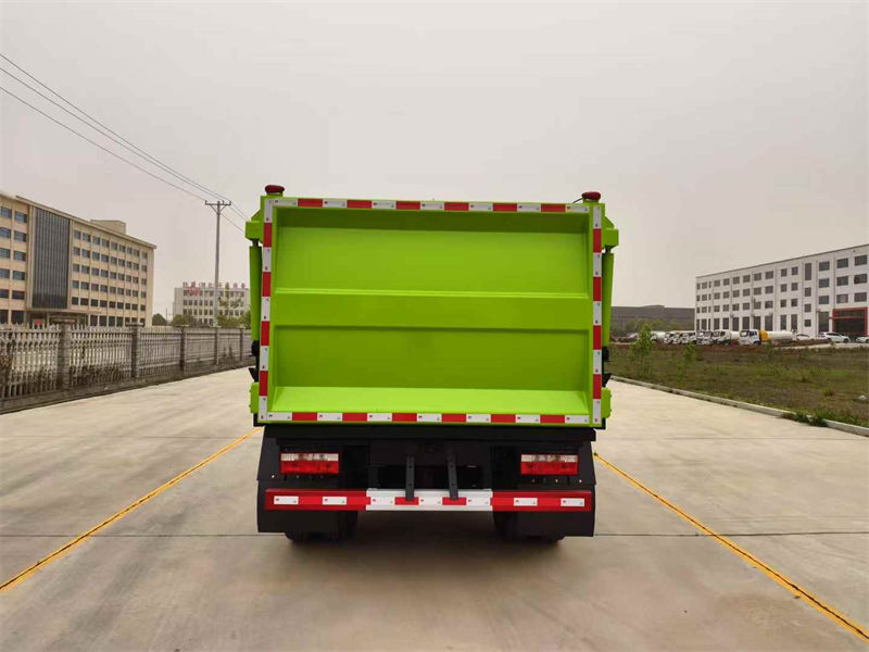 箱内带全推铲,推铲卸料(不带举升),侧装拉杆式提升机构(国标120L/240L国标方形塑料垃圾桶),尾部竖向双液压油缸举升带锁紧。