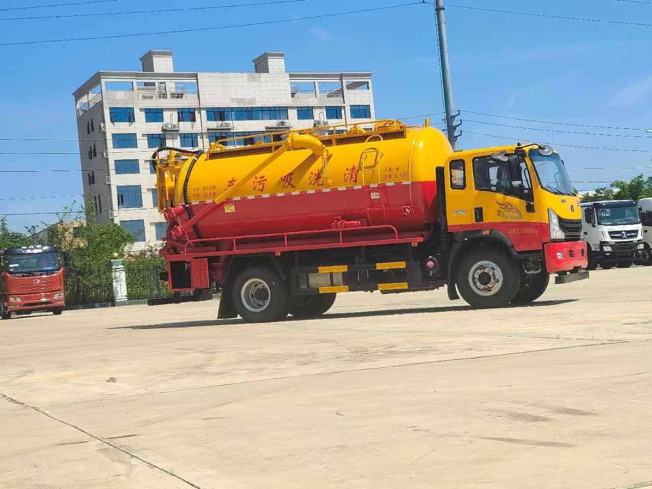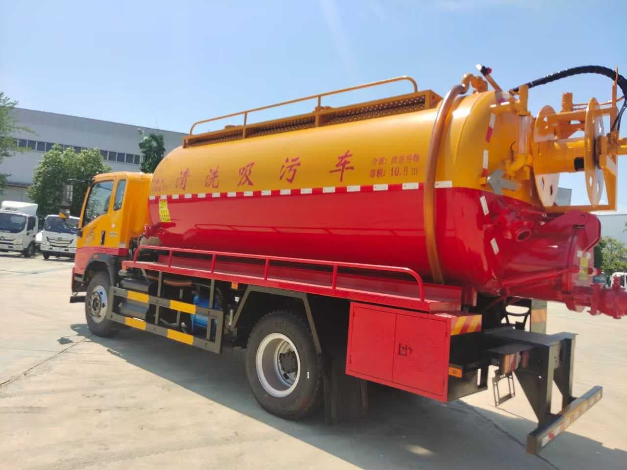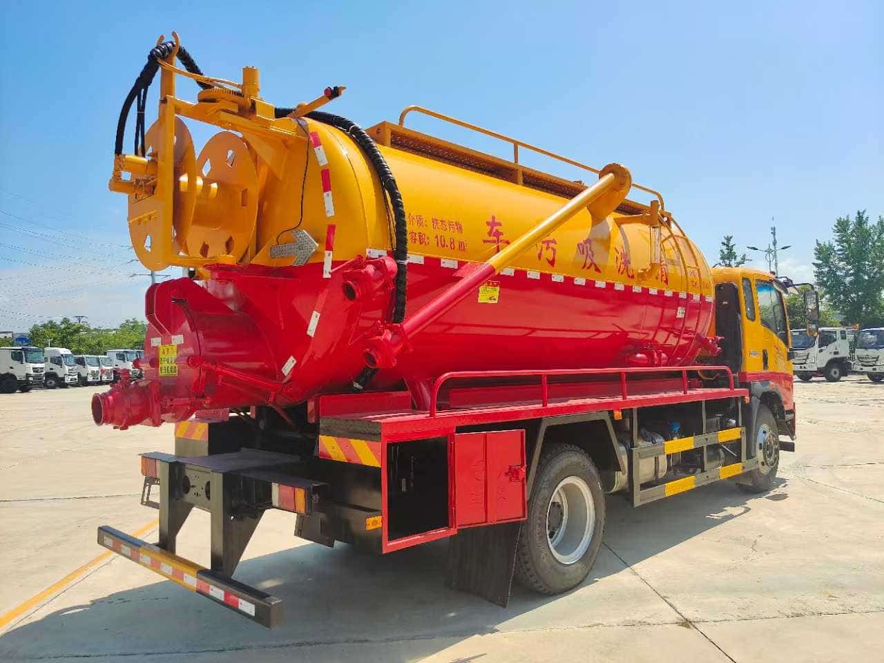 上装配置:罐体采用武钢6mm厚板,4方清水罐,10方污水罐。高压泵采用250流量德国品孚(天津通洁),水循环泵采用山东SK-15或204水循环泵。可选装渣浆泵带30米卷盘壹套。也可以用分动箱带动高压泵和水循环泵,可达到清洗和吸污同时工作的效果。