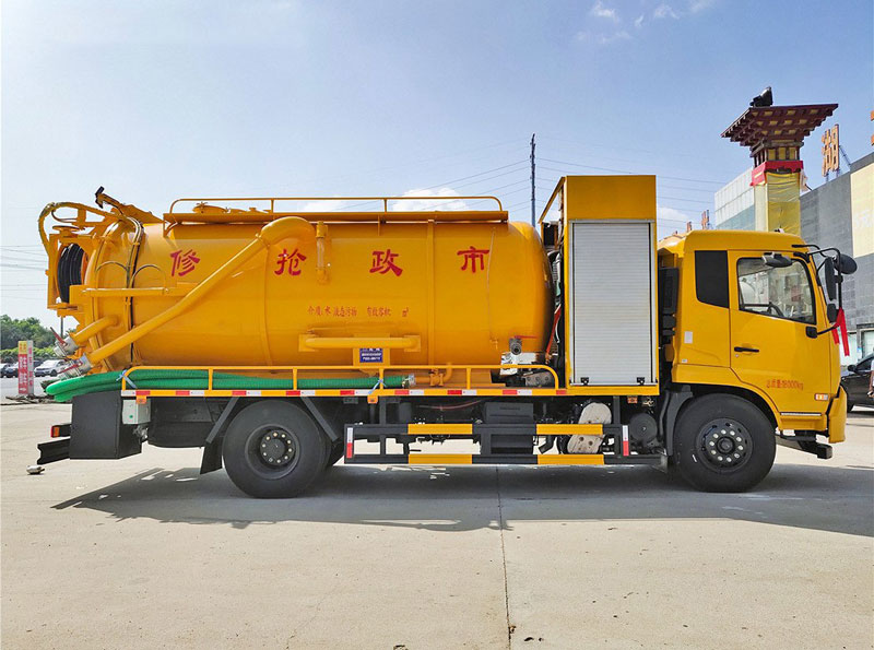 吸污部分:10方污罐,罐体8mmQ235优质碳钢,配潍柴375副发动机带淄博SK-30水循环泵,还可以选配罗茨泵。10米吸污管一根,进气管加过滤网,防溢阀加高,后盖卡扣锁紧,前视污亮管,后尾部加装3个力拓牌100mm的球阀吸污口,150mm口径排污阀,600mm排污口液压开启,罐体带举升功能,尾部后盖可液压开启。