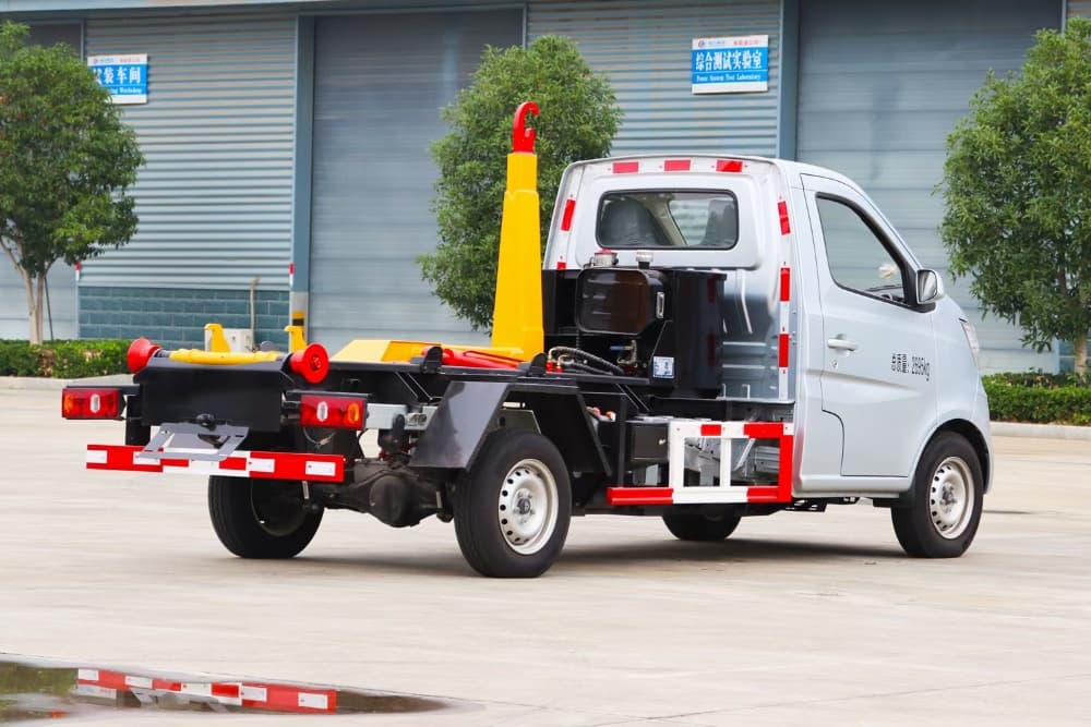 3 方纯电动车厢可卸式垃圾车,底盘型号 SC1032DBADBEV,3200mm轴距,底盘电机最大功率:60KW,82 马力,永磁同步电机.