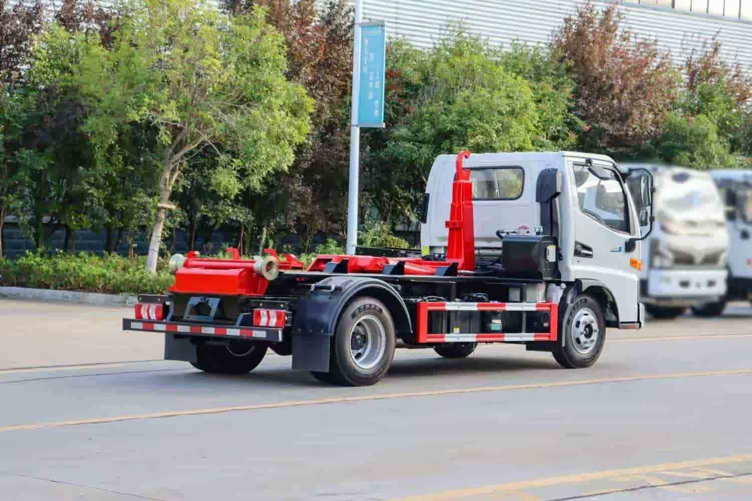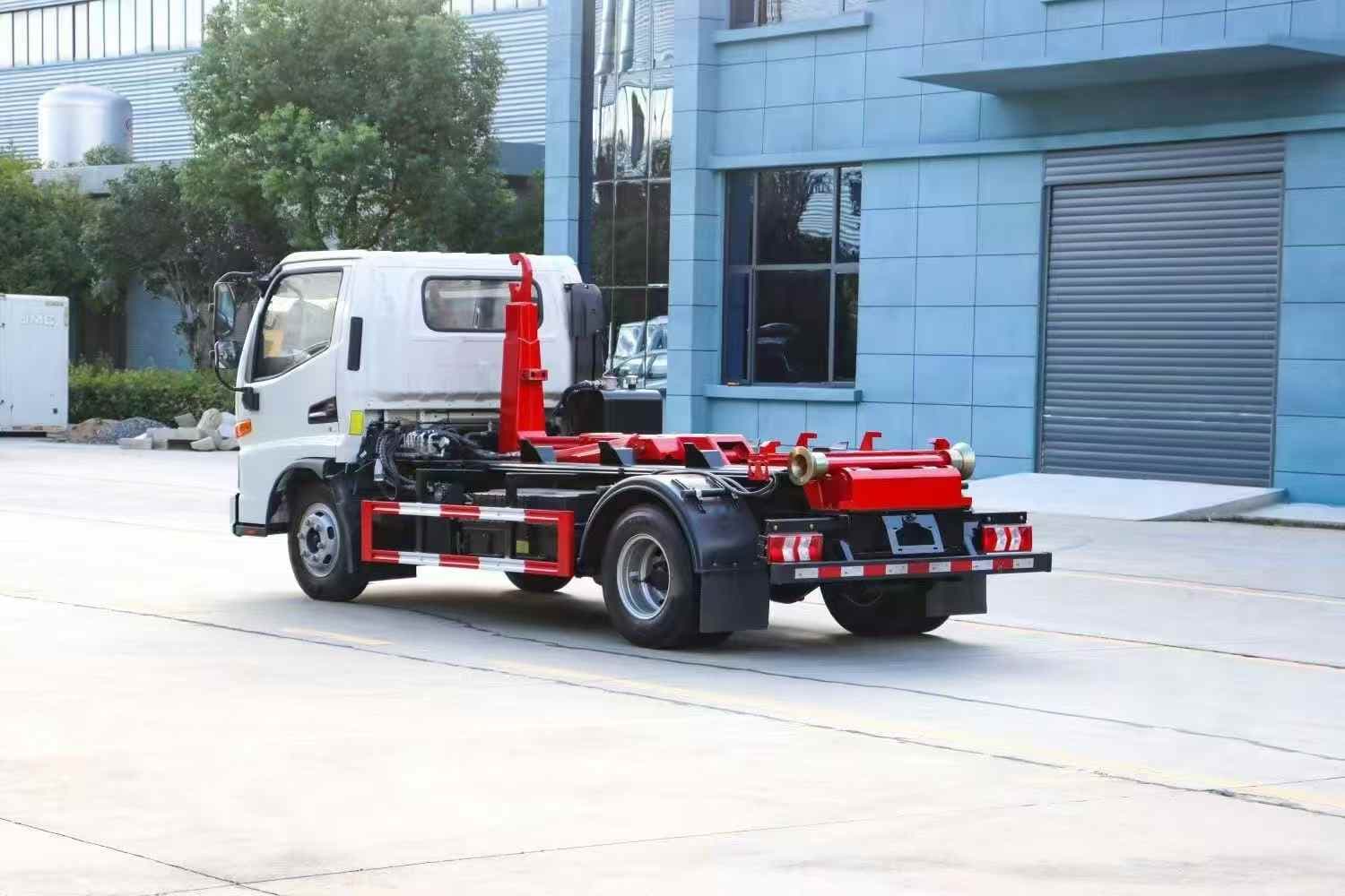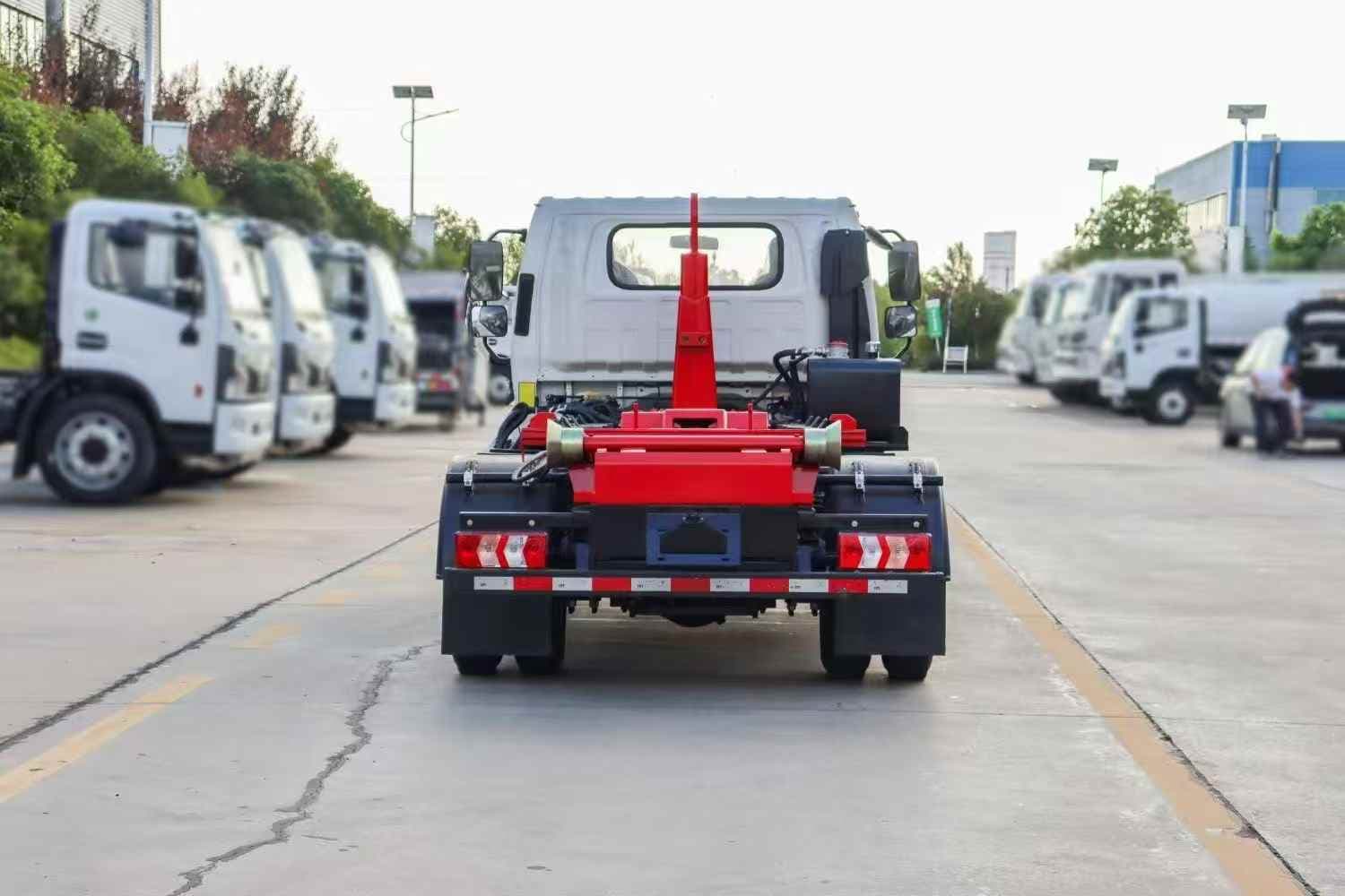 加强型副梁上带有六个箱体托座、固定箱体、防止箱体左右摆动,外径 160 油缸(选配 175 油缸)、机械锁臂机构、固定箱体挂钩、铸钢尾拖轮、尾部带液压支腿、高强度伸缩臂、防脱装置、安全限位阀、平衡阀,建筑垃圾、砂石料也能轻松勾起,一车多箱、循环作业、并且具备自卸车的所有功能提升能力12T。勾臂车具备自卸车的所有功能,更能一车多箱,一车多用,甩箱运输。免购置税,不限行