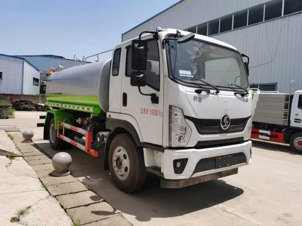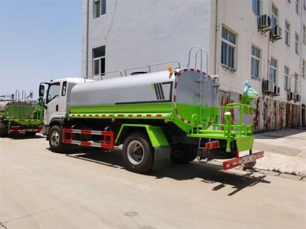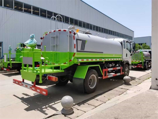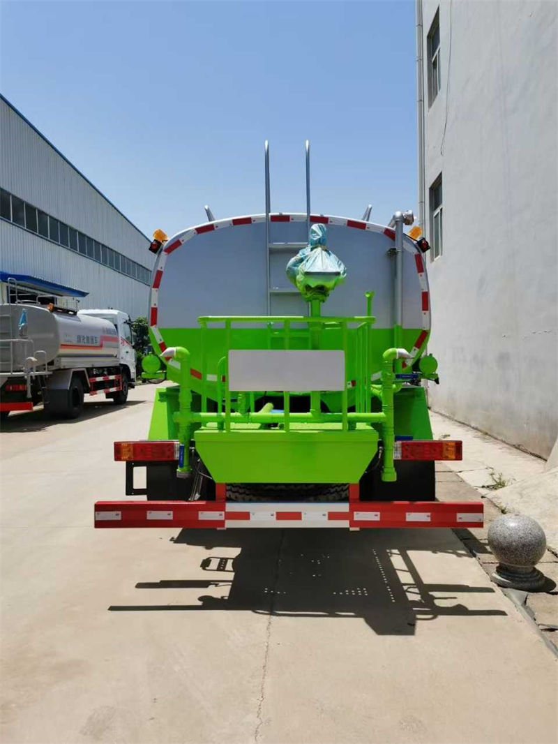 上装配置:罐体采用标准Q235碳钢板制作,容积实际可装水12吨,水泵型号:60-90龙王/天亿洒水泵(进出口:副驾一侧),可自吸自排,带前冲、后洒、侧喷、镀锌冲孔平台、