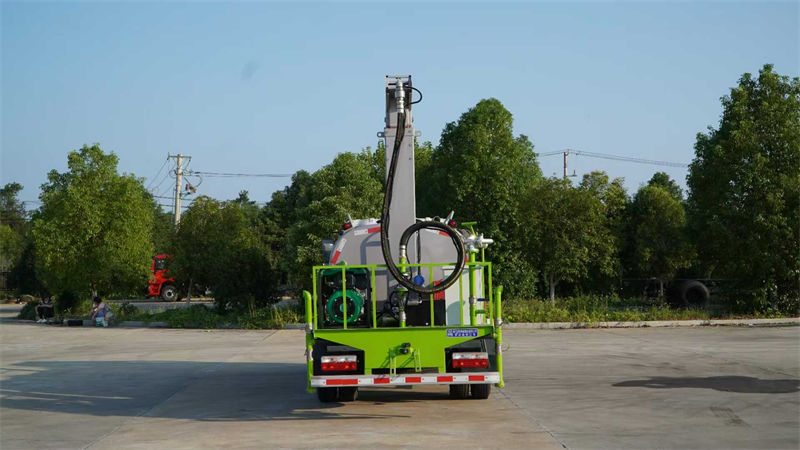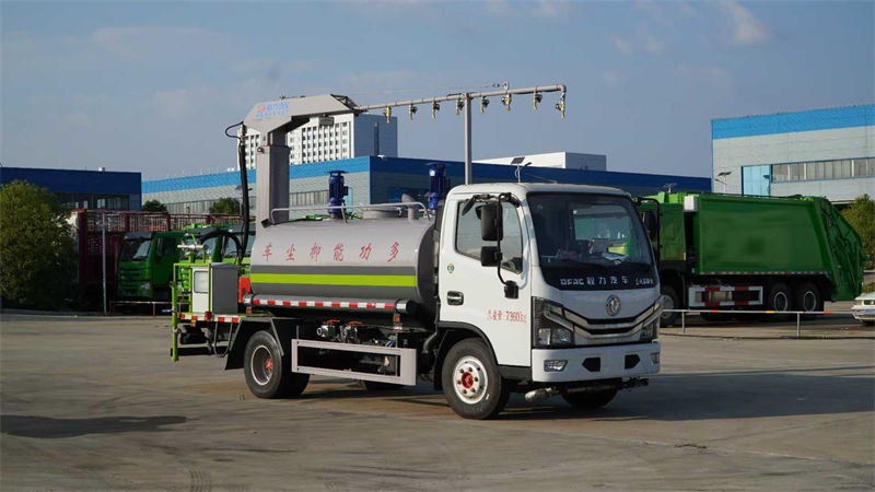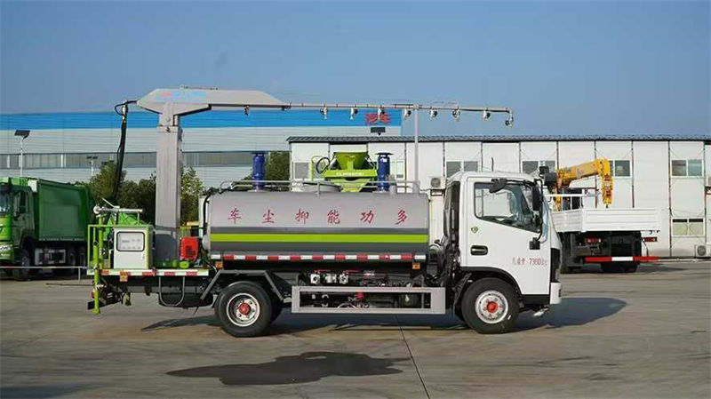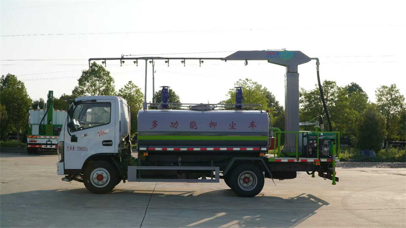 左右旋转,电控箱安装在后部平台,带前部冲洗路面喷洒装置,两侧喷洒装置,带后部工作平台、平台上安装绿化洒水炮(炮喷射形状可调),可调直冲状、大雨、中雨、毛毛雨,可连续调节,