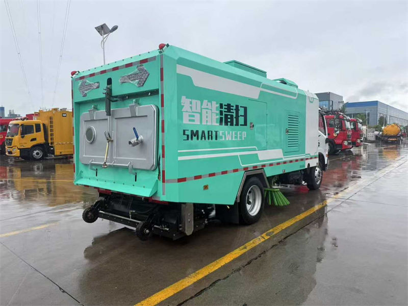 上装配置:五十铃87马力副发动机;智能控制开关;进口高压水泵,海德瑞沃电磁阀组;无级变速自动离合器;洛阳北玻免维护离心式风机; 竖置灰尘过滤桶;独立的猎豹打气泵,进口脉冲阀;手动泵应急系统 ,尾部LED箭头灯,竖置滤筒结构,后置吸盘(吸盘内带钢丝滚刷)吸盘左右带扫刷,内置高压喷杆。