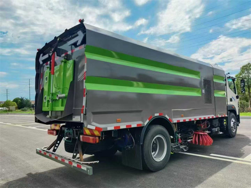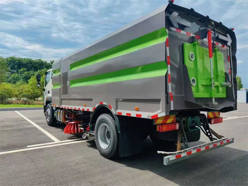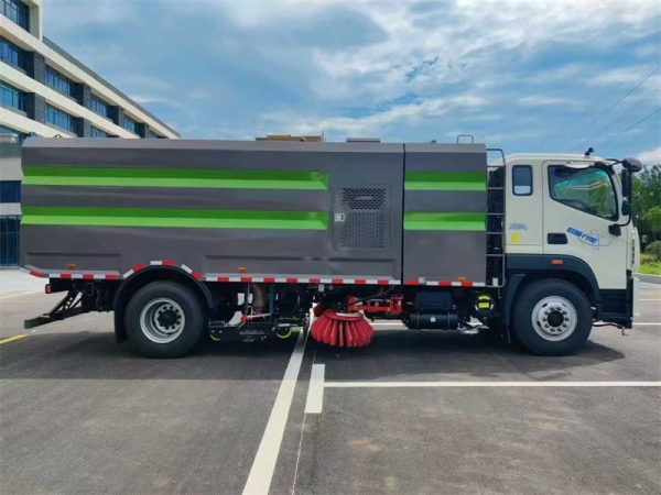 上装主要配置:副发动机、风机、高压水泵、清水箱约10立方、垃圾箱约7立方、左右立扫、带喷水杆的宽吸嘴、低压冲洗系统、扫盘降尘系统、液压系统、专用装置电控系统和副车架等改装而成,副发动机采用康明斯170马力,带2个中置扫盘,力顿马达,海普瑞斯电磁阀,海普瑞斯油缸,高压水泵,高压前角喷,高压后喷雾,高压卷盘,高压路沿清洗喷头,低压前对冲,垃圾箱高压自洁,CAN总线控制+尾部操作盒,LED箭头灯,垃圾箱、水箱带防溢低水位报警装置,可视影像!