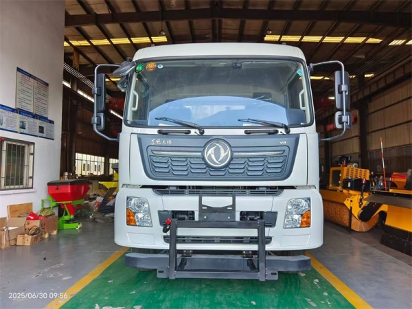 4500mm轴距康机260马力、前面可选装2.5—3.7m扫雪滚刷、除雪推铲、亦可选装波形防撞护栏清洗机、后面货箱边3底4;