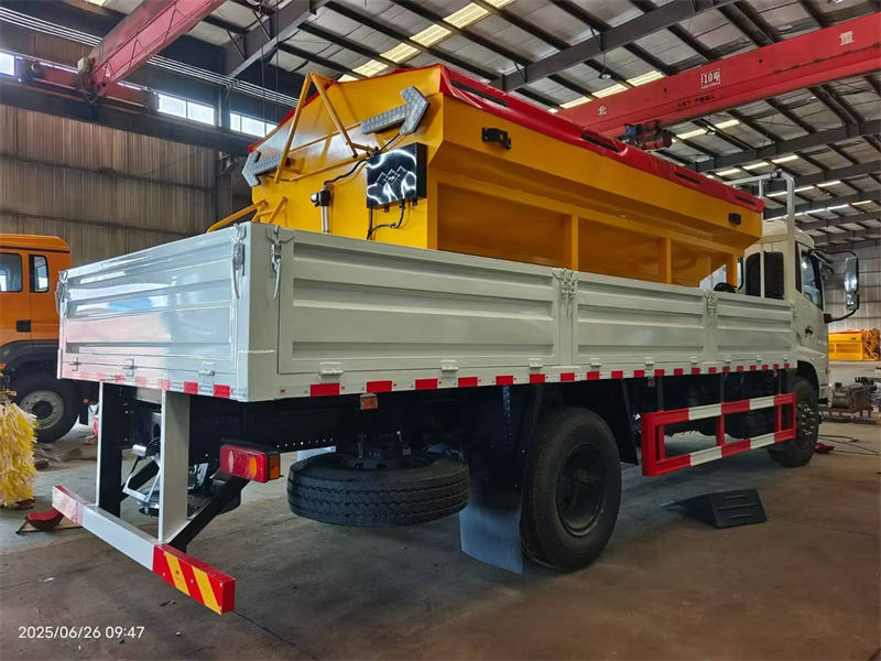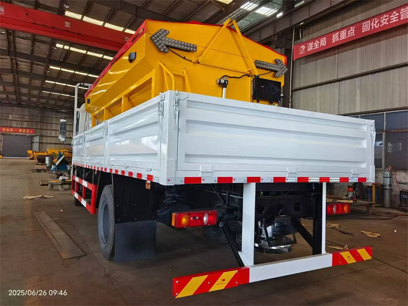 承载约10-13立方固体融雪剂撒布机,是冬季公路养护保安全畅通的一款应急必备专用车辆。