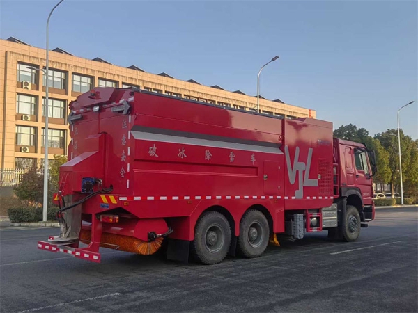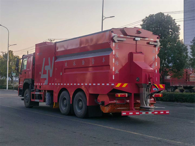 5:后尾部加装13立方固态融雪撒布机,主机取力,液压控制系统,撒布方向撒布量均匀可调。