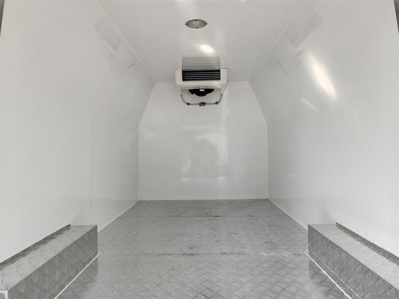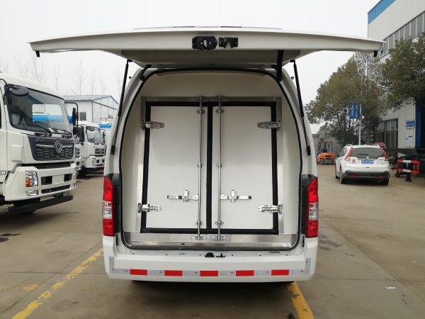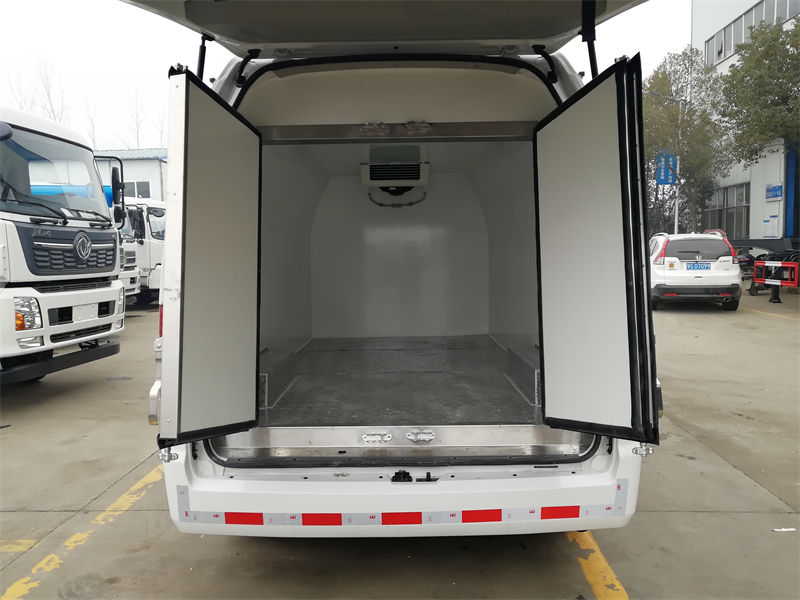 厢体配置:厢体采用内玻璃钢板制作,中间填充保温板, 采用圆弧式制作工艺,铝花纹底板,后门为对开门。