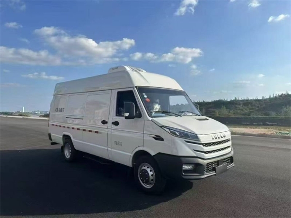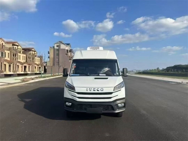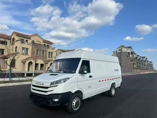 底盘配置:V40型得意Turbo Daily系列,后双胎,SOFMI8140.47Z6/2.5排量122马力,ABS,前盘后盘制动,电动玻璃,遥控钥匙,尿素系统,油箱:70L,5KW空调,140A发电机,双压支架,195/75R16LT轮胎,依维柯2830.5型变速箱,标配负18度冷机!