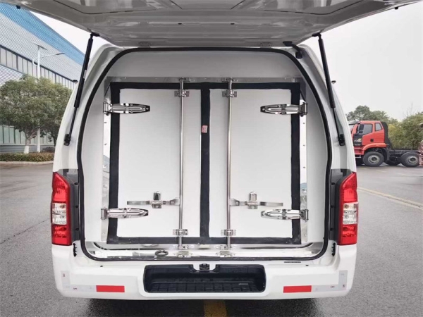 内胆弧形结构厢体,5cm保温板,塑钢地板,后双开门,不锈钢门框及锁件,选装侧开门。